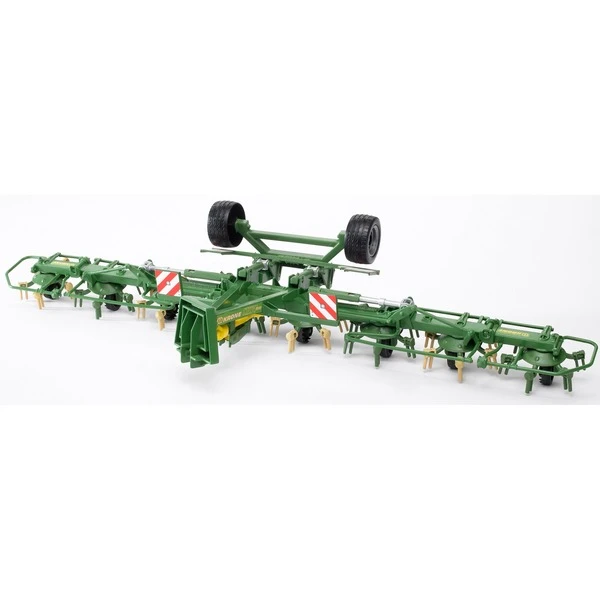 Möglichst effektives Arbeiten wird in sämtlichen Bereichen der Landwirtschaft immer wichtiger. Im Bereich der Grünlandbearbeitung setzt der Krone Zettwender KWT 8.82 Maßstäbe. Auch in Kombination mit kleinen Schleppern ist es ihm durch seine speziell entwickelte Armkonstruktion möglich, sehr große Arbeitsbreiten zu bestellen. Das BRUDER-Modell des Zettwenders ist dem Original detailgetreu nachempfunden und kann mit allen Traktoren der Profi-Serie kombiniert werden. Auch beim Modell können die mehrfach klappbaren Kreiselausleger eingeklappt und das bei der Feldarbeit nach oben geschwenkte Straßenfahrwerk nach unten geklappt werden. Der sichere und schnelle Straßentransport vom Einsatzort zum Bauernhof, oder umgekehrt, wird dadurch ermöglicht. Das Modell zeichnet sich durch einzeln angetriebene Kreisel aus, die sich wie beim Vorbild paarweise gegeneinander bewegen. Die gegenläufigen Kreiselzinken (links und rechts drehend) sind bei Krone farblich unterschiedlich lackiert. Nach dem Motto im Kleinen wie der Große findet sich die Farbcodierung auch am Modell wieder.Art.-Nr.: 1233192