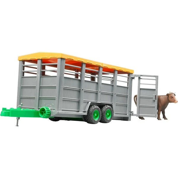Im Frühjahr werden viele Nutztiere auf die Weiden gebracht, wo sie den Sommer verbringen. Dazu benutzen Landwirte spezielle Viehanhänger für den schonenden Transport der Tiere. Einen solchen, vielseitigen Viehtransportanhänger gibt es neu im Sortiment von bruder. Unser Modell im Maßstab 1:16 kann, wie das Original, seine Plattform absenken um ein einfaches Beladen der Tiere zu ermöglichen und ist mit einem Trenngatter ausgerüstet. Plane und Türen lassen sich leicht öffnen und der Hänger ist mit allen Traktoren und Fahrzeugen mit Normanhängekupplung zu kombinieren. Im Lieferumfang ist bereits eine Kuh enthalten, insgesamt bietet der Anhänger Platz für 6 Tiere.Art.-Nr.: 1432934