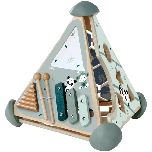 Diese Spielpyramide von Eichhorn besteht aus 16 Teilen und beinhaltet eine bunte Palette verschiedenster Spielelemente. Mit dabei ist eine Kugelbahn, Musikfunktionen oder ein Steck- und Memospiel. Das hochwertig verarbeitete Spielcenter zum Zusammenbauen ist aus Birkenholz gefertigt und wurde speziell entwickelt, um die Koordination und Feinmotorik von Kleinkindern zu schulen und zu fördern. Jede Seite fördert die Motorik und Hand-Augen-Koordination der Kinder auf eine andere Art und Weise.Art.-Nr.: 1825421