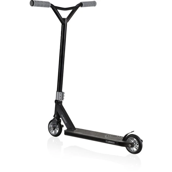 Der GS 720 macht mit stabilen Materialien so gut wie alles mit: Dieser Stuntscooter verfügt über eine 360°-Lenkung und einen gebogenen Lenker mit ergonomischen Griffen. Die Stahl-Vorderradgabel ist für anspruchsvolle Tricks verstärkt. Der GS 720 steht auf PU-Rollen mit Aluminium-Felgen, einem Durchmesser von 110 Millimetern und zwei Pegs für anspruchsvolle Stunts. Am Ende des stabilen Aluminium-Decks befindet sich die Hinterradbremse aus Carbon. Der GS 720 ist für ein maximales Nutzergewicht von 100 Kilogramm ausgelegt.Art.-Nr.: 1700502