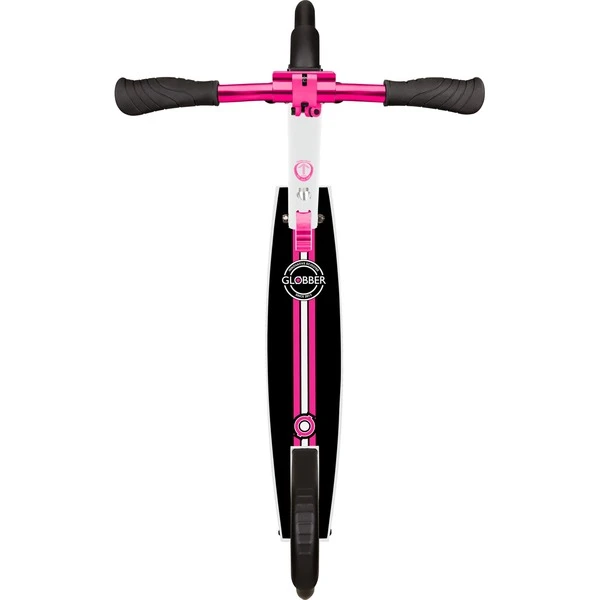 Große Räder, tolle Technik: Der NL 205 rollt auf gegossenen PU-Rollen mit einem Durchmesser von 205 Millimetern und ABEC 7 Kugellagern. Dieser Scooter für Kinder, Jugendliche oder Erwachsene hat eine Hinterradreibungsbremse mit rutschfestem Bremspedal. Mit dem extra breiten Lenker im BMX-Stil mit ergonomischen Griffen und einer Lenkstange, die von 98 bis 108 cm verstellbar ist, bleibt der NL 205 auch dank der Frontfederung in jeder Fahrsituation kontrollierbar. Das extra tiefe Deck aus Aluminium hat eine weiche Antirutsch-Trittfläche. Dieser Scooter ist für ein maximales Nutzergewicht von 100 Kilogramm ausgelegt. Mit dem einfach zu handhabenden Klappmechanismus ist der NL 205 blitzschnell zusammengefaltet und kann dann wie ein Trolley gezogen werden.Art.-Nr.: 1700487