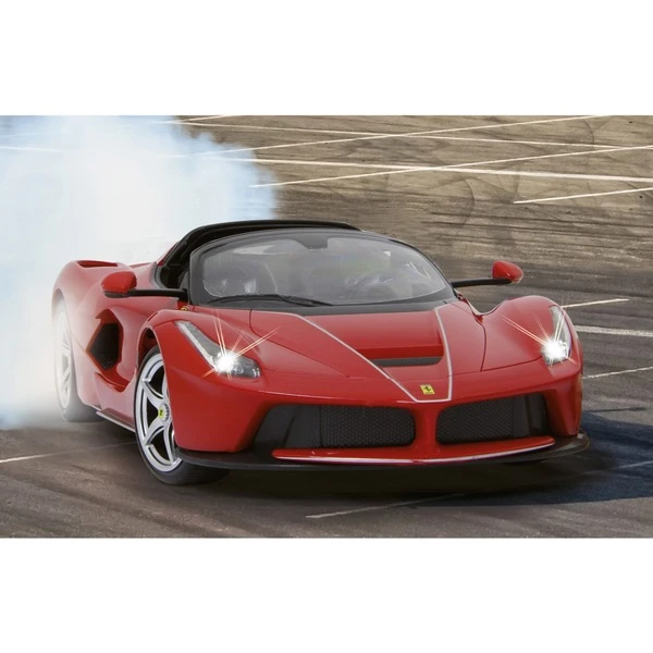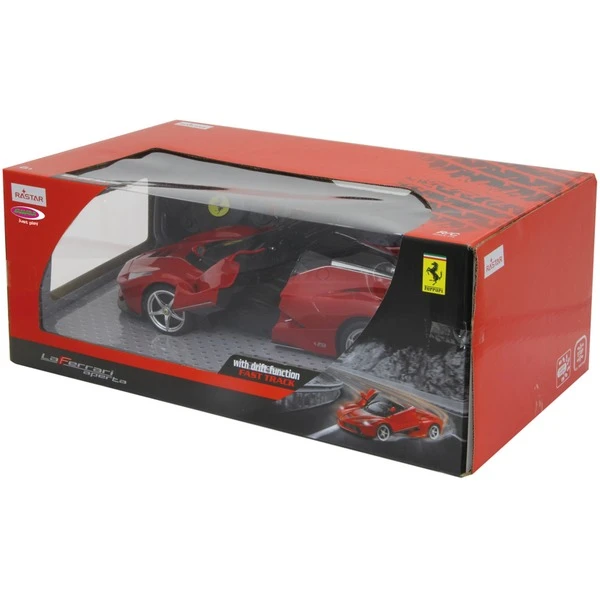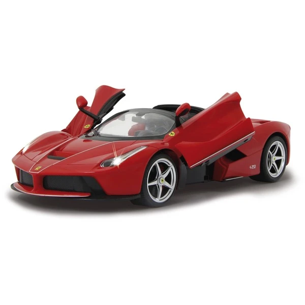 Wer hat nicht schon davon geträumt, einmal einen schönen sportlichen Wagen zu bewegen? Mit den offiziell lizenzierten Deluxe Car Modellen von Jamara kann man sich diesen Traum erfüllen und sich den sportlichen Ferrari LaFerrari Aperta im Maßstab 1:14 ins Wohnzimmer holen. Mit LED-Licht und nachgebildeten Details, die mit viel Liebe umgesetzt wurden, überzeugen die Fernlenkfahrzeuge auch durch die hochwertige Verarbeitung und den detailgetreuen Innenraum. Auch die Türen lassen sich manuell öffnen und schließen. Der Ferrari LaFerrari Aperta verfügt sogar über eine Driftfunktion. Im Lieferumfang ist eine 2-Kanal-27-MHz-Fernsteuerung und eine Anleitung enthalten, eine Montage ist nicht erforderlich.Art.-Nr.: 1553067