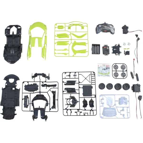 Der Lamborghini Sián FKP37 Bausatz von Jamara ist ein 72-teiliges Set mit dem man sich seinen eigenen RC-Rennwagen mit detailgetreuem Innenraum sowie manuell öffenbaren Türen zusammenbauen kann. Die Bauteile werden durch einfaches Zusammenstecken miteinander verbunden, somit ist kein Werkzeug oder Kleber notwendig. Der Bausatz beinhaltet außerdem einen Dekorbogen zum Aufkleben. Mit der ergonomischen Fernsteuerung hält man, wie in einem echten Rennwagen, die Schaltzentrale in der Hand und erreicht Geschwindigkeiten von bis zu 8 km/h. Leicht zu erlernende Kommandos lassen das Modell genau das tun was man vorgibt. Also, ab zur Stadtrunde auf dem Parkett im Kinderzimmer und dem Spielspaß steht nichts mehr im Wege.Art.-Nr.: 1798441