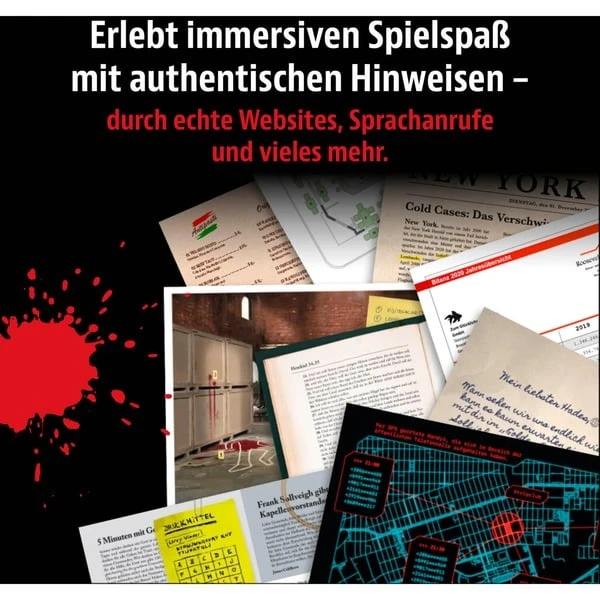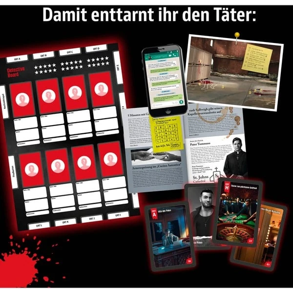 | Inhalt/Ausstattung | 72 Spielkarten, 13 Objekte, 1 Detective Board, 1 Notizzettel | ||