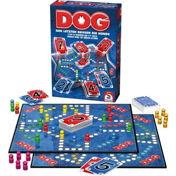 Sieht aus wie MENSCH ÄRGERE DICH NICHT, ist aber DOG! Das Einzige, was gleich ist, ist, dass man seine vier Spielsteine sicher in sein Häuschen bringen muss. Allerdings bewegt man sie mit Karten vorwärts, die so manche Überraschung parat halten können. Partnerschaftlich unterstützt man dabei seinen Teamkollegen. Denn den Sieg fährt man nur gemeinsam ein. Einfach spannend und ein toller Spaß!Art.-Nr.: 1186700