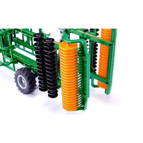 Der Amazone Centaur ist ein Arbeitsgerät für Großtraktoren und ist zur Arbeit in größeren landwirtschaftlichen Betrieben eigentlich unverzichtbar. Diese multifunktionale Bodenbearbeitungsmaschine ist perfekt für alle Einsatzfälle und meistert selbst schwierigste Herausforderungen scheinbar mühelos: Von Stoppelbearbeitung und Grundbodenbearbeitung über krumentiefe Lockerung bis hin zur Saatbettbereitung. Der Rahmen der robusten Modell-Maschine ist aus Metall, Grubberzinken und Scheibeneggen-Elemente hingegen aus Kunststoff. Die Reifen sind aus gummiertem Material mit landwirtschaftlichem Profil und bieten auch in tiefem und schwerem Boden perfekten Halt. Für ein noch realistischeres Spielerlebnis lassen sich die Packerwalzen an Front und Heck drehen, zudem lässt sich der Rahmen klappen und in der Transportposition feststellen. Diese imposante Maschine kommt in der Original Amazone-Lackierung in Grün mit orangenen Kunststoffdetails.Art.-Nr.: 1902530